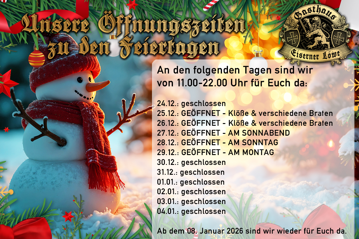 25.12.: GEÖFFNET – Es gibt hausgemachte Klöße & verschiedene Braten